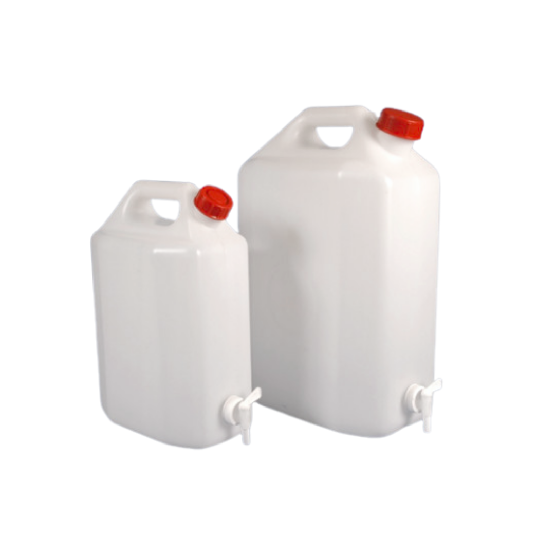 Con volúmenes de 10 y 20 litros, se han diseñado específicamente para racionalizar espacio en el laboratorio y en líneas pequeñas de producción, ofreciendo la oportunidad de poder disponer de agua y de soluciones acuosas y disolventes en poco espacio. El grifo está colocado en una posición tal que permite colocar el bidón verticalmente y ofrece la ventaja de simplificar el uso para el envasado y el transporte de líquidos.
