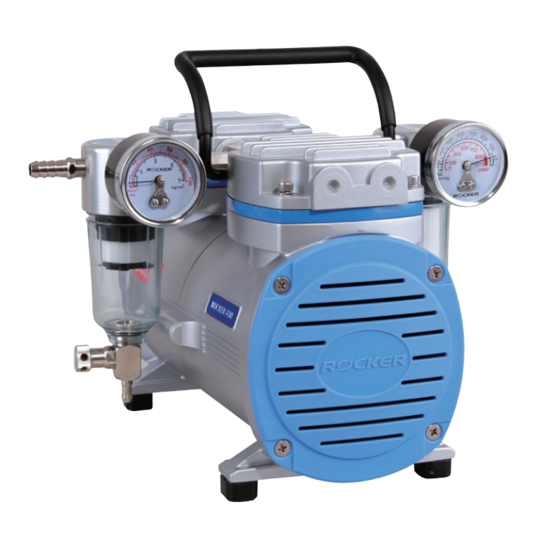 Bomba de vacío/presión sin aceite Rocker 430, vacío/presión en una sola máquina, protección contra desbordamiento Prote™, trampa de humedad con cartucho de filtro, dispositivo de protección térmica. Aplicaciones de bombas de vacío/presión sin aceite, detección microbiana, muestreo de aire, prueba de sólidos suspendidos, filtración al vacío, filtración a presión.