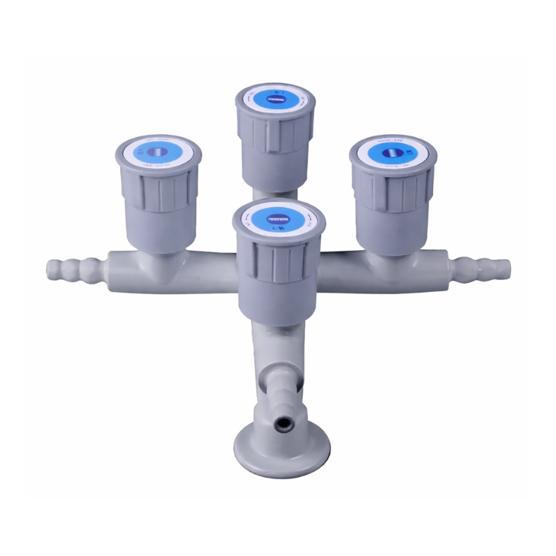 Este grifo de laboratorio vertical de cuatro salidas se instala en el fregadero y se usa comúnmente para obtener agua para instrumentos de laboratorio, limpiar tubos de ensayo y material de vidrio, etc. El producto está diseñado con cuatro válvulas controladas independientemente y cuatro salidas de agua.
