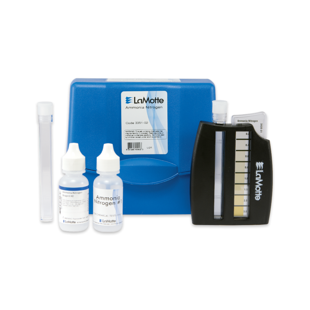 Este kit analiza el nitrógeno amoniacal en muestras de agua de acuario de agua dulce y salada utilizando el comparador Octa-Slide 2.