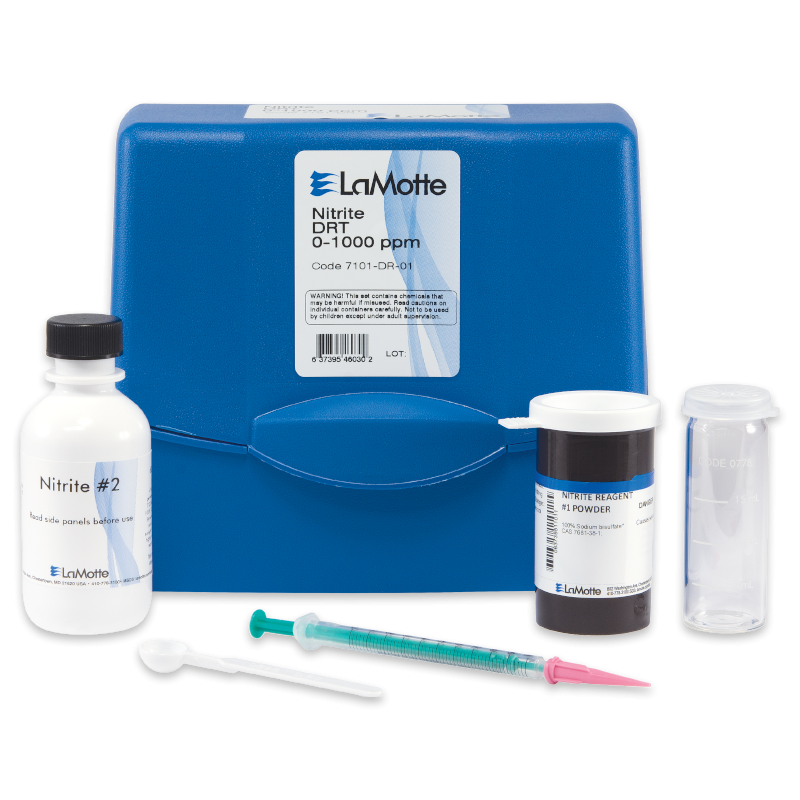 Este kit analiza la presencia de nitrito utilizando el método del valorador de lectura directa. El rango/sensibilidad es de 0 a 1000 ppm/20 ppm de NaNO 2 . 50 pruebas a 1000 ppm.
