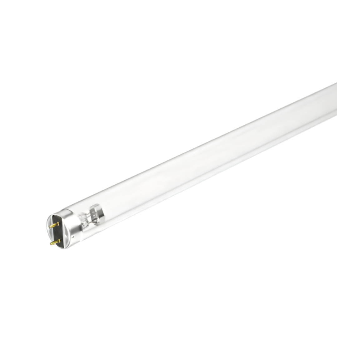 Con tubo de vidrio transparente que irradia mas del 85% de su energía en el espectro UV - C, emitiendo una onda corta de 254 NM (Tipo C) principalmente para matar o inactivar las bacterias, hongos, virus y otros microorganismos en el medio ambiente, el agua y la desinfección de superficies y aire. Neutraliza atmósferas en los recintos de frutas y vegetales y/o preparación de alimentos, clínicas y consultorios. Seca tintas y hace envejecimientos prematuros. La radiación emitida es perjudicial para la piel y los ojos y no se debe utilizar en presencia de personal. Potencia 110v. Incluye tubo, base y soporte. Imagen solo de referencia.