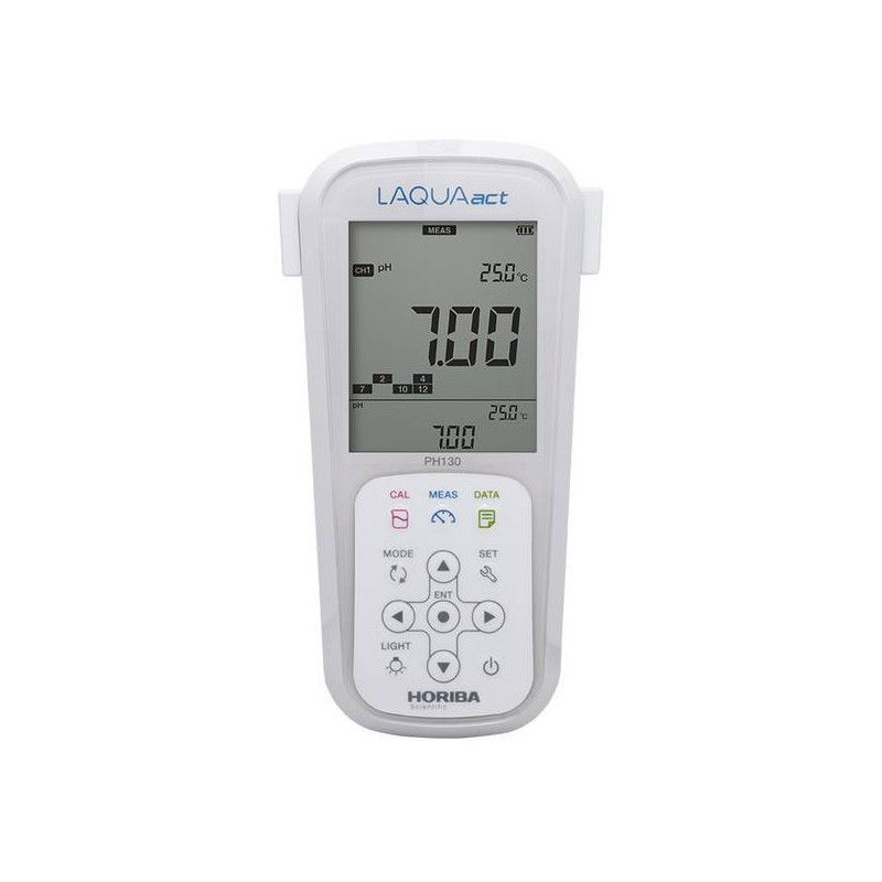 El kit incluye: | • PH130-k medidor portátil de pH/ORP (3999960169) a prueba de agua • Medidor PH130 • Electrodo combinado de pH de gel 9651-10D • Soluciones de calibración pH 4.01, pH 7.00, pH 10.01 (60ml) • Maletín de transporte |