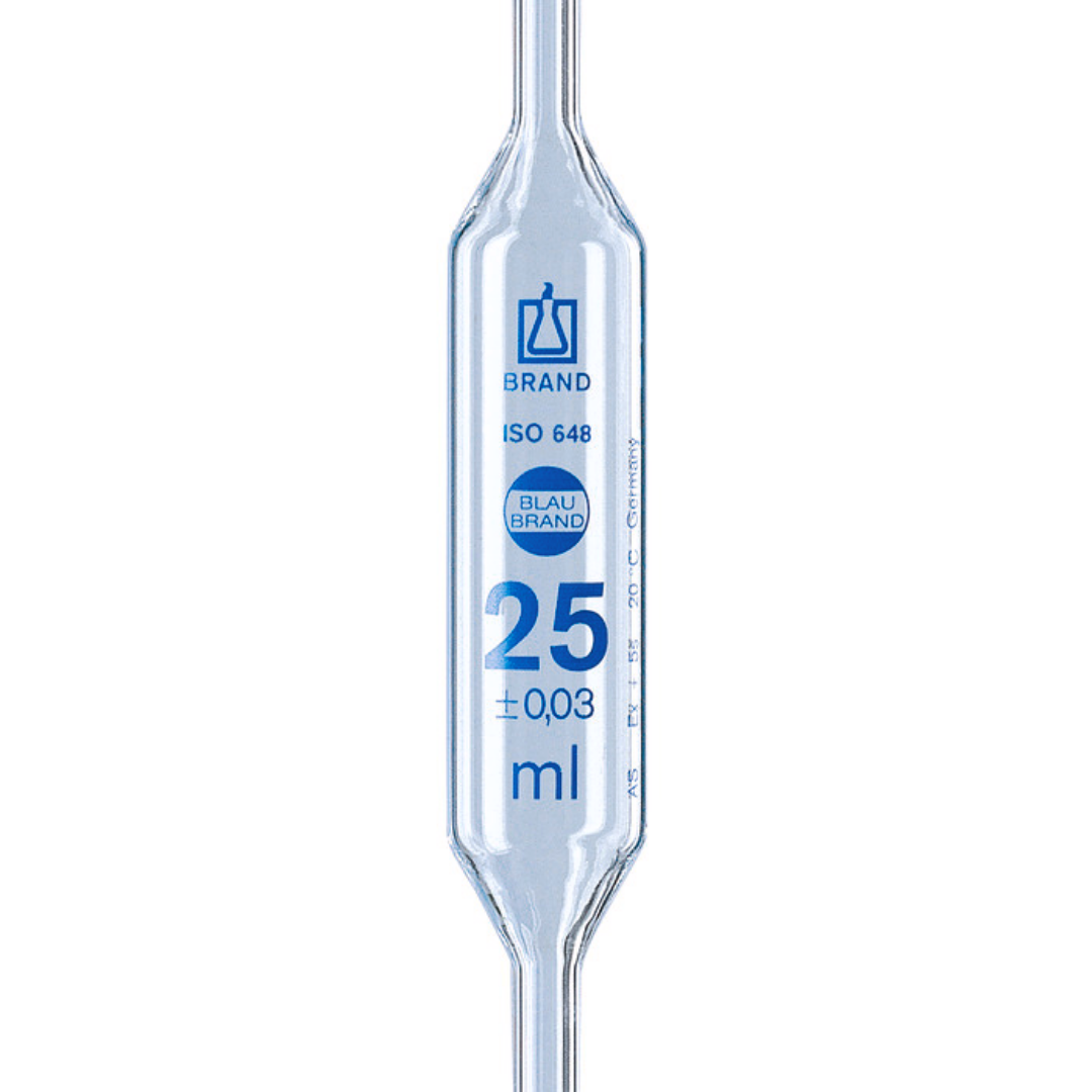 Pipetas aforadas, BLAUBRAND®, vidrio AR-GLAS®, 1 aforo, graduación azul. DIN EN ISO 648. Calibrado para entregar (TD, Ex). Tiempo de espera 5 segundos.