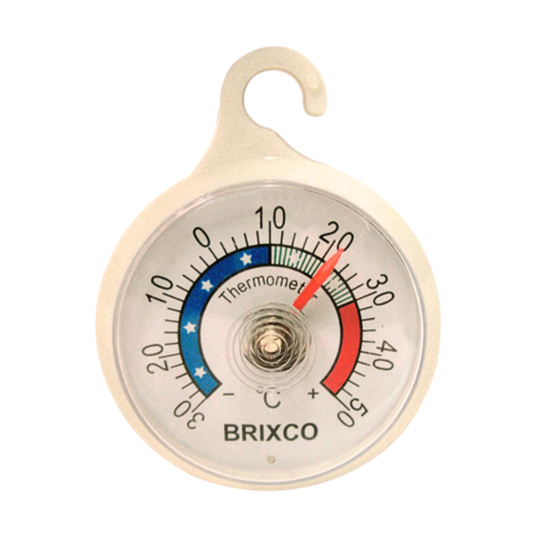 Termómetro ambiental/refrigerador, tipo reloj, rango temperatura: -30+50ºC, división de escala: 2°C. Presentación 4 unidades. Disponible hasta agotar existencias.