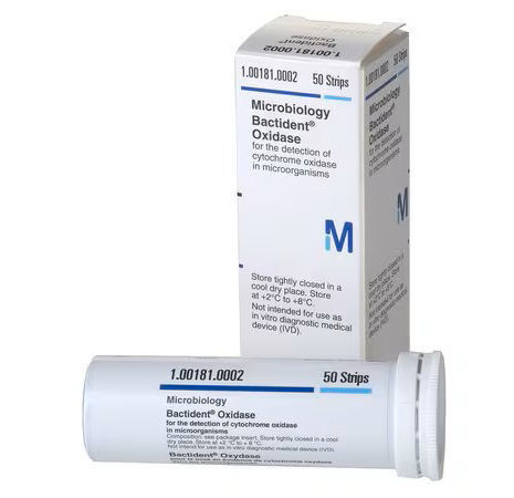 Las tiras reactivas Bactident™ Oxidase están diseñadas para detectar microorganismos positivos para la citocromo oxidasa en una muestra o cultivo.